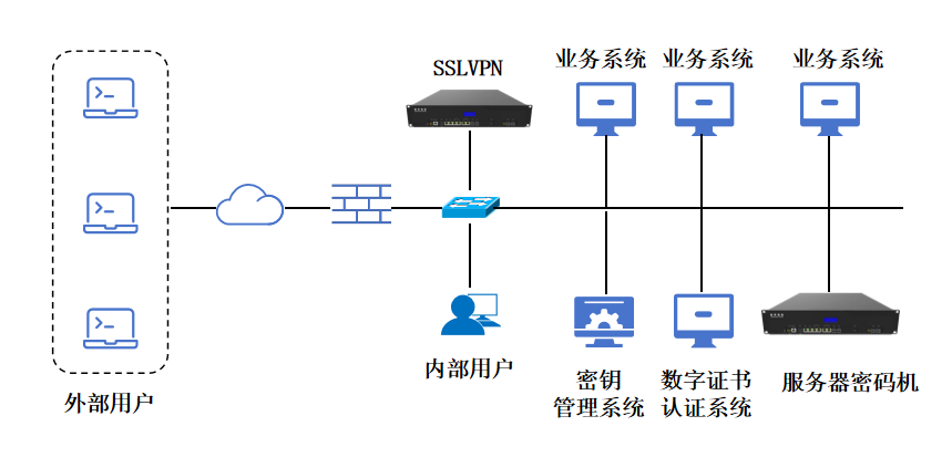 服务器密码机实现数据加解密、数据完整性校验以及数字签名和验证功能,可广泛应用于政府、石化、电力、税务、公安、金融机构等党政机关及对信息安全要求较高的单位,还可以用做CA、KMS、电子签章、电子公文传输、数据加解密平台等系统的配套密码设备,为上述应用提供高速的加解密运算。